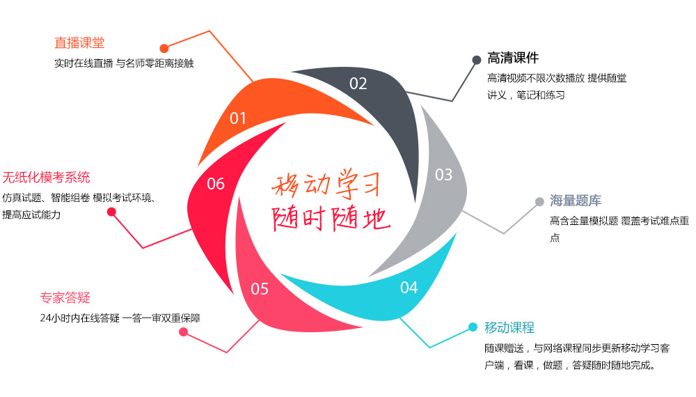 1.冲刺串讲班采用直播授课形式,定期上课,实时直播。直播结束后课程上传至学员中心,供学员回放和下载。 2.在线直播仅限冲刺串讲班学员享受。基础讲解班学员可观看和下载冲刺串讲班直播回放课程。 3.实时直播需要在电脑端在线观看。直播结束后提供直播课程回看和下载。网络课程(包括直播回放课程)在线观看不限时间、不限次数,并支持在电脑或手机/平板移动端播放。 4.在线课程及下载的视频课程在考试结束一周后关闭;mp3格式课件和讲义下载后可长期保存。