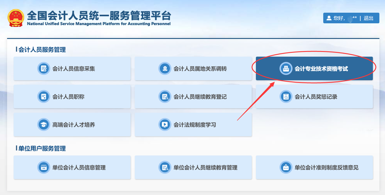 注册成功后,即可登录全国会计人员统一服务管理平台: