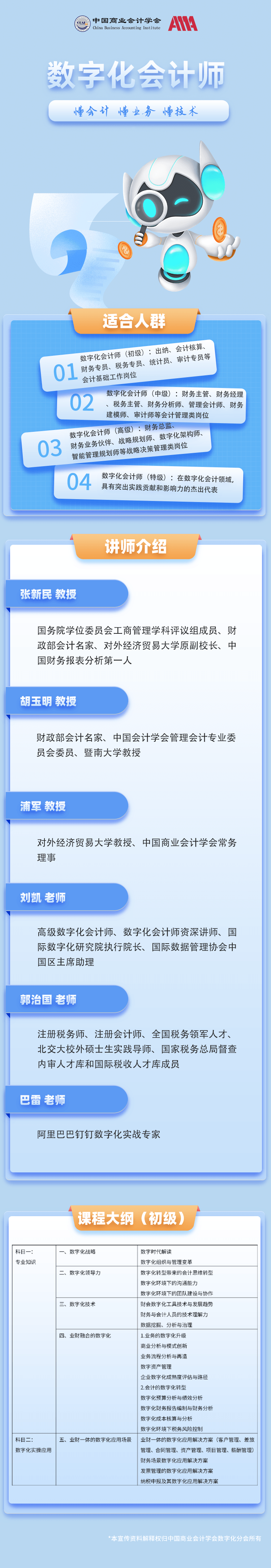 高级数字化会计师、数字化会计师资深讲师、国际数字化研究院执行院长、国际数据管理协会中国区主席助理